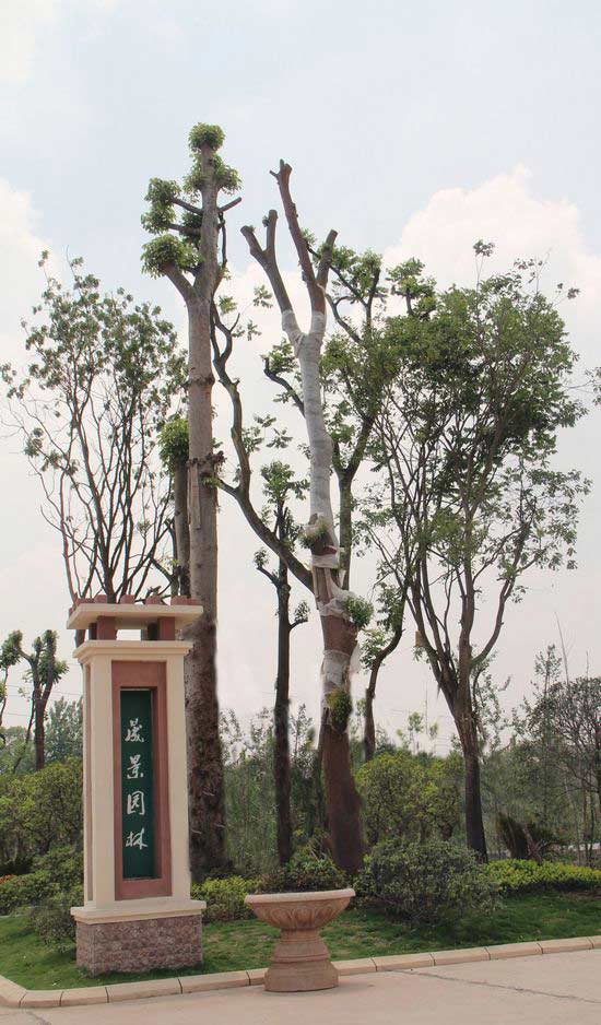 公司現(xiàn)有苗木基地800余畝。種有香椿、樸樹、皂桷、木棉、幌傘楓、欒樹、杜英、天竺桂、銀杏、秋楓、紅葉石楠、桂圓、香樟、桂花、黃桷樹、鐵樹、羅漢松等各類常用園林景觀植物數(shù)十余種。